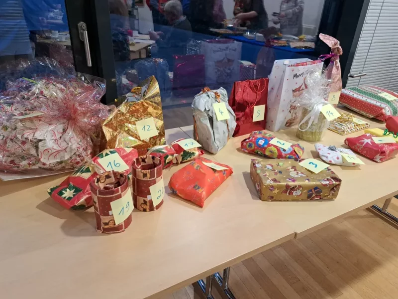 Am 16. Dezember 2025 ab 16 Uhr, ließ der Dienstagstreff mit einer Weihnachtsfeier das Jahr 2025 ausklingen. Der Musikkreis, auch Hausband genannt, spielte Weihnachtslieder, bei denen mitgesungen durfte und auch wurde. Zum Buffet gab es mehrere Sorten von Pizza, auch vegetarische, Pasta und Salat. Wie jedes Jahr bei der Weihnachtsfeier fand auch dieses Mal das Wichteln großen Anklang. Die Weihnachtsfeier löste sich gegen 19 Uhr auf und wurde von ca. 40 Personen besucht.